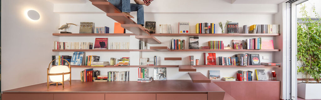 Philippe, apasionado del diseño, la arquitectura, la literatura y el arte contemporáneo, es originario de una localidad al sureste de París aunque, en la actualidad, habita un singular ático interior de 80 m², dispuesto en dúplex dentro de un edificio de 1900, renovado en 2006, situado a escasos metros de la Plaza de España de Madrid. Se trata de una vivienda de crujía muy estrecha, orientada al sur y con una terraza en la planta baja del dúplex que se abre hacia la imponente silueta de la Torre de Madrid, de los años cincuenta, el primer rascacielos de hormigón de la capital.