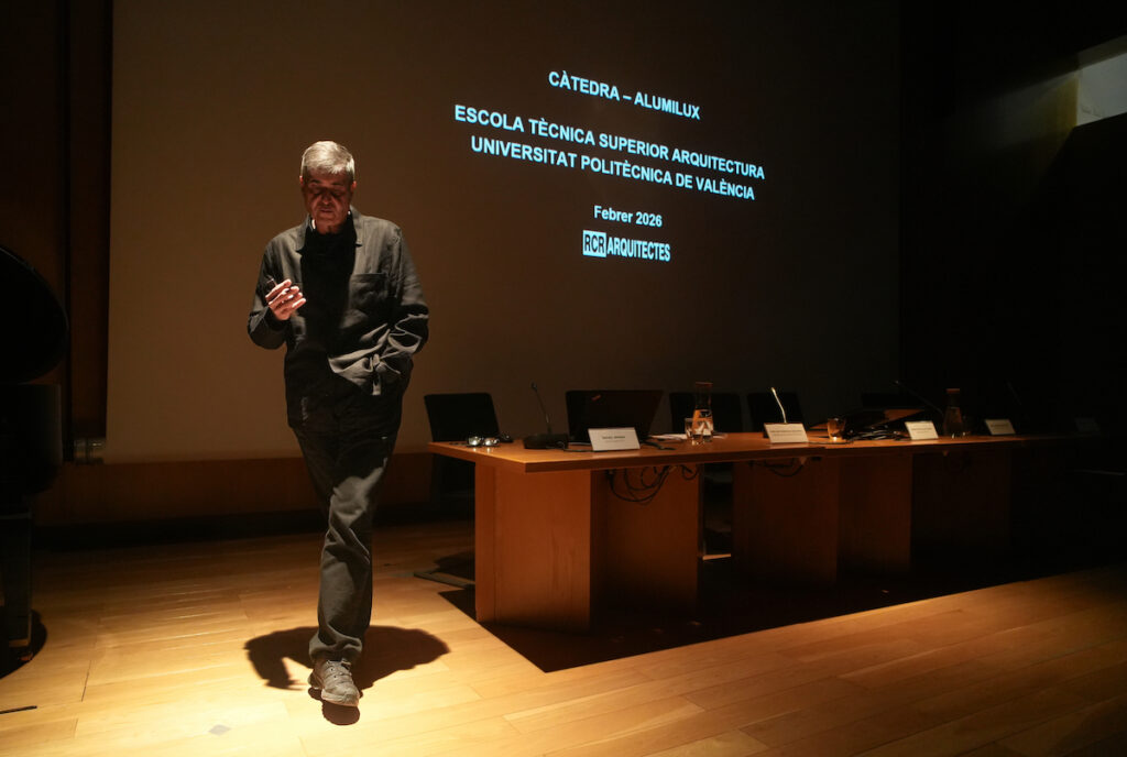 «No miréis arquitectura, iros a la esencia, iros a la naturaleza ¿Por qué te piensas que Gaudí es capaz de hacer La Pedrera? Las fotografías de la Capadocia que le llegaron le emocionaron tanto que creó La Pedrera. O como la montaña o el bosque que es la Sagrada Familia. Toda su inspiración le venía de la naturaleza, ahí es donde tenéis que ir a buscar las referencias. También es verdad que en el mundo del arte, que nos llevan diez años de ventaja siempre porque no tienen las condiciones que tiene la arquitectura, pueden soñar más, por eso es importante también ver el mundo del arte, van por delante de nosotros en cuanto a conceptos. Naturaleza y arte, esas son las referencias». Así respondía el arquitecto Rafael Aranda, de RCR Arquitectes, Premio Pritzker en 2017, a las preguntas del público que abarrotaba el Aula Magna de la Escuela de Arquitectura de la Universitat Politécnica de Valencia para escuchar su conferencia, con la que se abre la programación cultural del segundo semestre del curso.