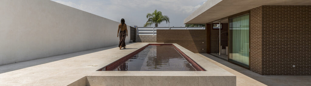 En el límite entre Riba-roja y L’Eliana, dentro de una trama de urbanizaciones residenciales, se alza La casa de la piscina roja, la primera vivienda de una promoción de unifamiliares implantadas sobre parcelas con ligera pendiente. «El proyecto parte de la estrategia de construir desde la topografía, aprovechando el desnivel natural del terreno para organizar los usos, optimizar las vistas y reducir al mínimo los movimientos de tierra», explica el arquitecto Diego Serrulla.