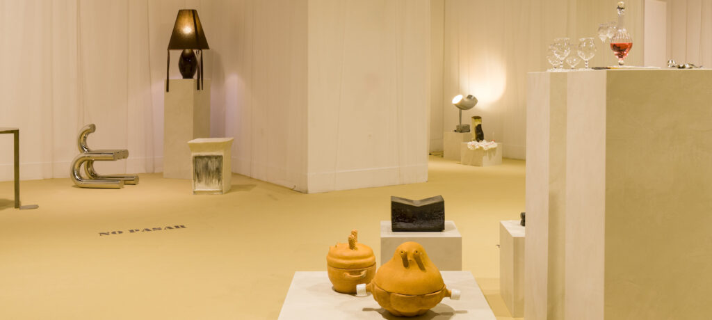 Callejeando por Ciutat Vella, entre las imponentes Torres de Quart y la zona de Velluters colonizada por la Escuela de Diseño y el Conservatorio, se llega a la calle Carrasquer, donde está Espacio Modotti. El lugar que ocupó la mítica galería Espai Visor ahora reparte sus metros entre ser escuela de fotografía y galería de arte, dirigido por Miriam Lozano y Mayte Piera. Con unos grandes escaparates que dan a la calle, los diseñadores Daniela Muñoz White y Juan Carlos Iniesta, que se dejan ver en las redes como Madreinspain, los han ocupado todos con sus piezas, en las que mezclan las lámparas, los significados y las señales urbanas.