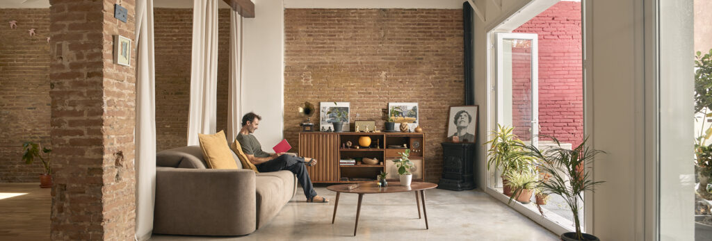 Cuando el cliente del arquitecto Jose Costa compró la vivienda, lo hizo a ciegas. La casa estaba abandonada y tapiada desde hacía muchos años y no había información ni fotos del interior. Solo se veía, desde GoogleMaps, que en el patio trasero había una higuera enorme. «Fue una apuesta arriesgada. Podía ser que comprara una casa o que comprara un solar. Por suerte fue una casa, pero lo cierto es que estaba en muy mal estado. La rehabilitación tuvo que ser total. La buena noticia era que la preexistencia era muy interesante y tenía mucho material estético con el que jugar», explica el arquitecto del proyecto denominado la Casa del Filósofo.