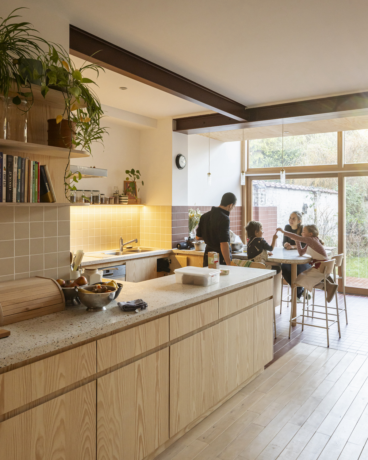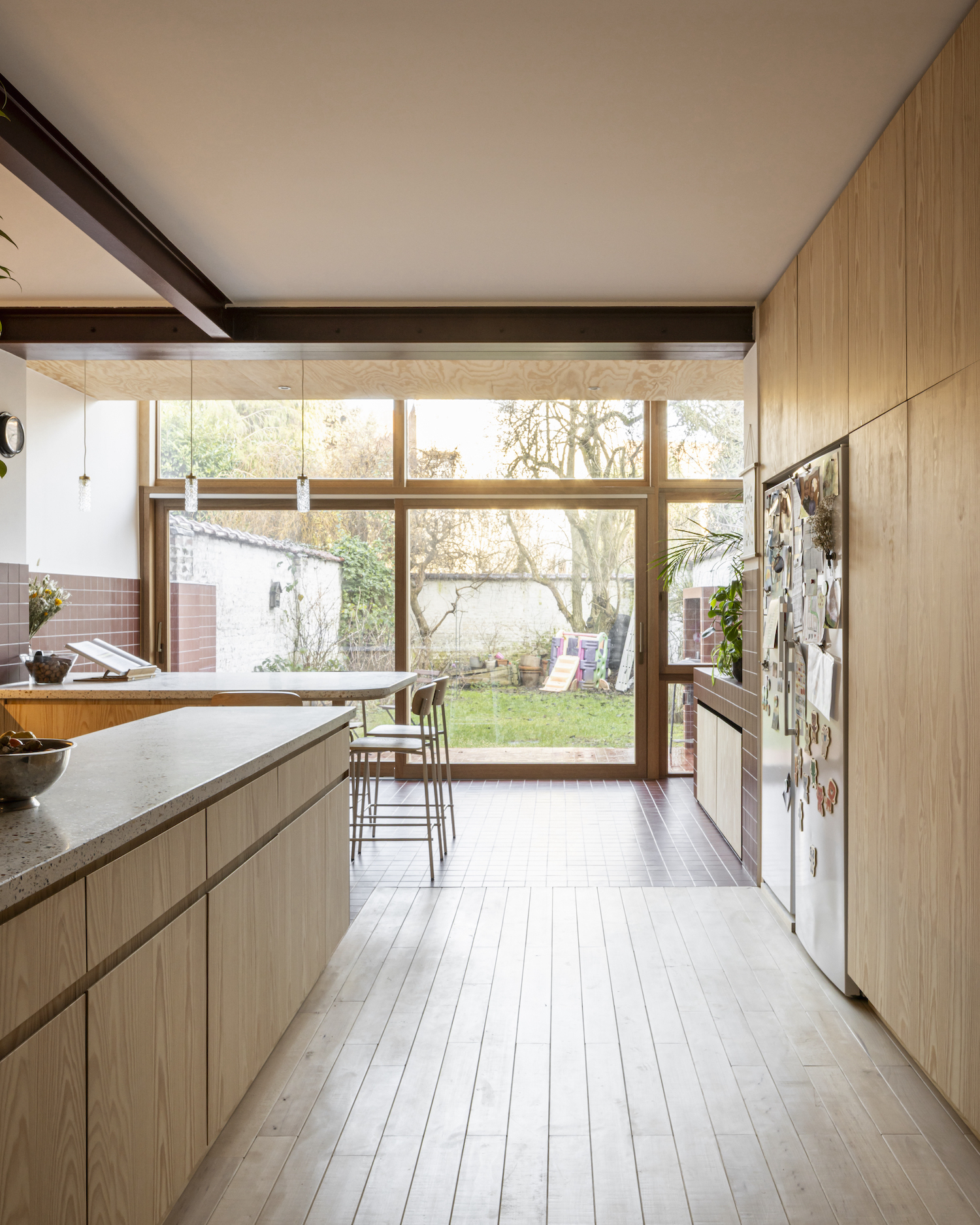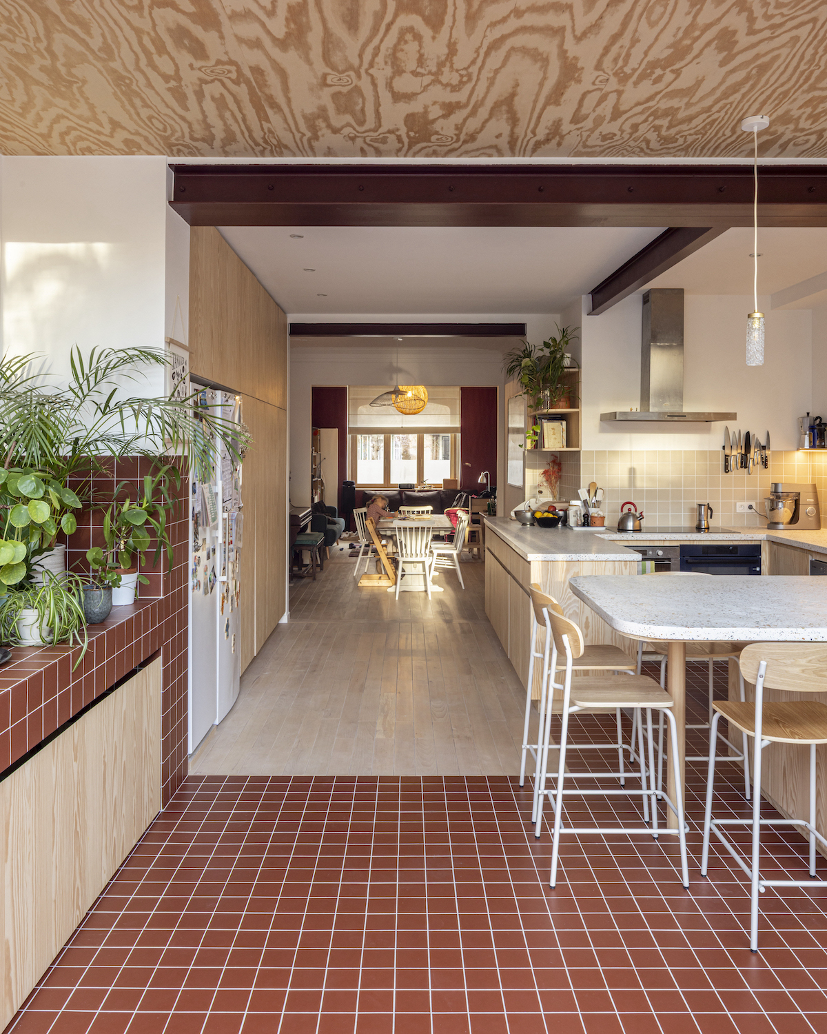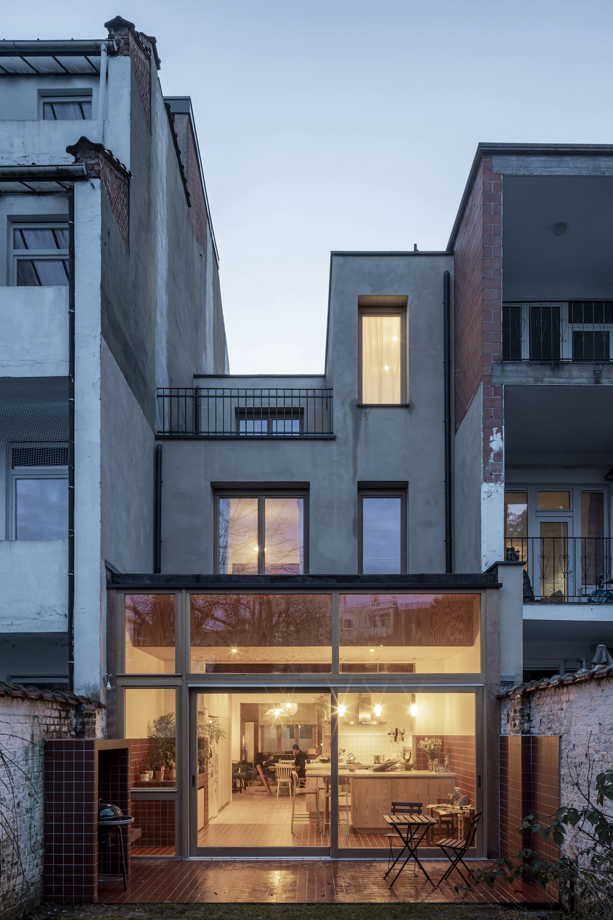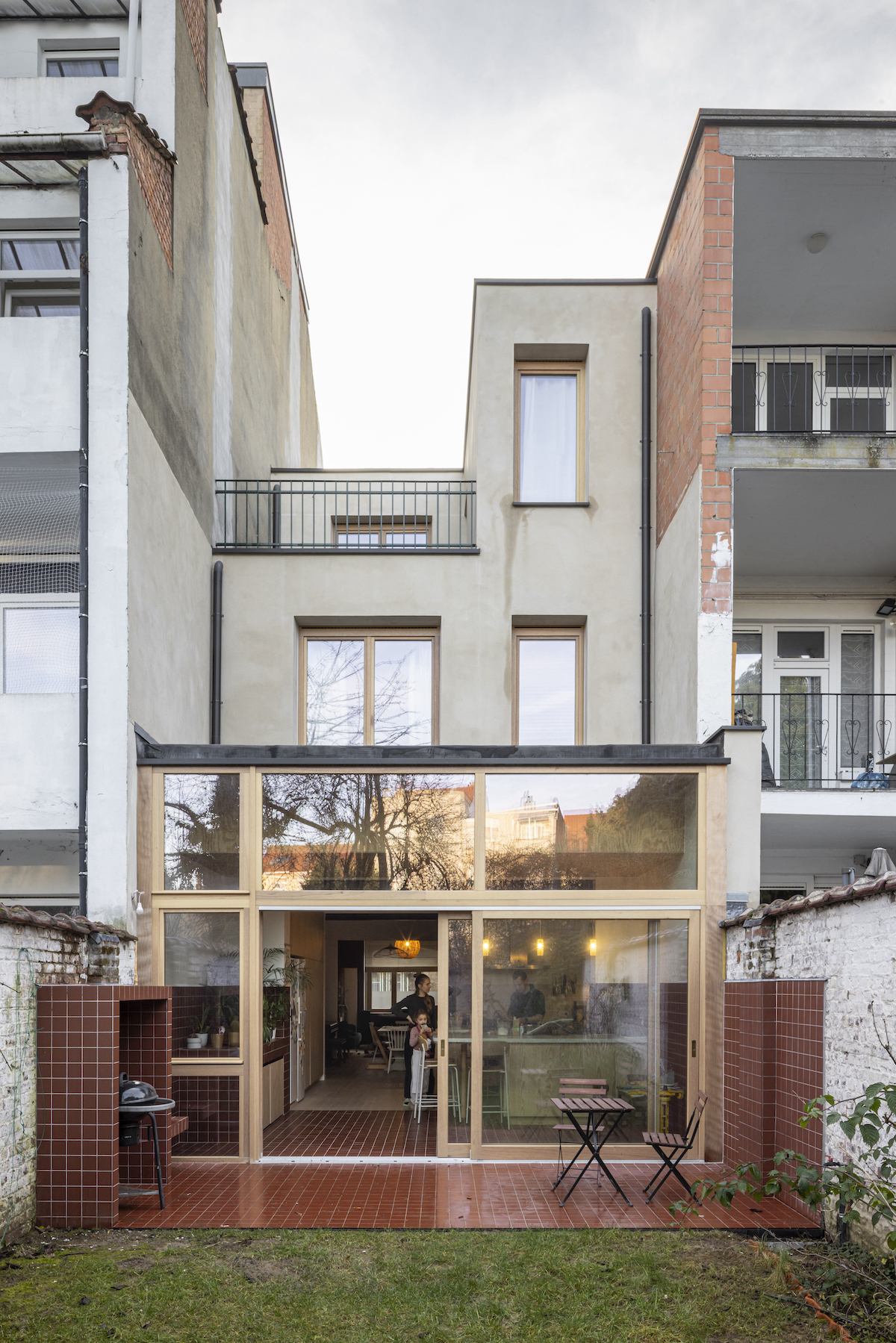 El proyecto nace de la voluntad de una familia de adaptar una vivienda tradicional de Bruselas a sus necesidades actuales. La casa, como es habitual en este tipo de edificios, es estrecha pero larga, con un bonito jardín trasero, verde, donde crece un gran árbol. El estudio de arquitectura UNIT, formado por Nathalie Havelange, Andreu Vélez Guillén y Hendrik Verlinden, ha sido el responsable del trabajo.