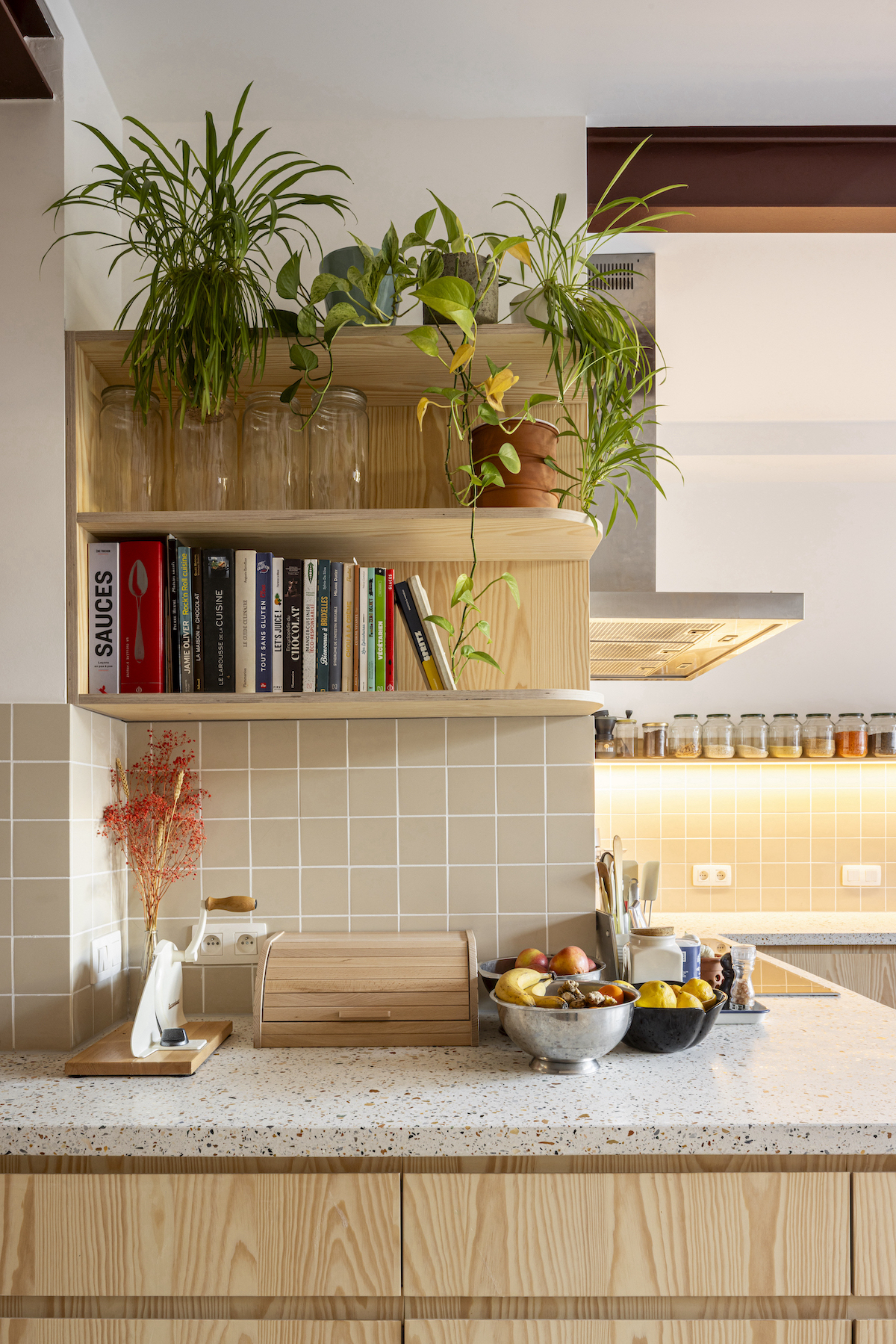 «La conexión con el patio posterior de la vivienda no era muy buena» –explica el arquitecto valenciano Andreu Vélez– «la cocina ocupaba todo el área interior vinculado al jardín y una escalera exterior, que daba acceso a una balconada en la primera planta, bloqueaba mucho espacio. Además, la casa está rodeada de edificios más altos y retranqueada respecto a las dos construcciones vecinas. Estos dos hechos, sumados al hecho de que la fachada trasera de la vivienda está orientada a noreste, provocaban que la cocina fuera un lugar oscuro, casi siempre en sombra».