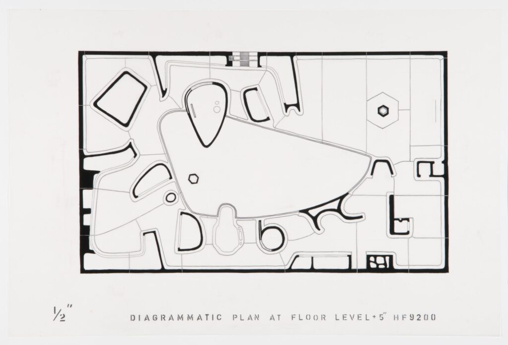 En aquel panorama, el espíritu de vanguardia no se limitó a la escala del objeto, también se trasladó a la arquitectura. Proyectos como la House of the Future, de los arquitectos británicos Alison Smithson y Peter Smithson, plantearon una vivienda suburbana como un sistema integrado, continuo, casi orgánico. La casa dejó de ser una suma de elementos para convertirse en una envolvente única que organizaba la vida en un interior interconectado, glamuroso y de alta tecnología, que vivía de un patio interior abierto al cielo. De nuevo, la misma idea: más que construir por agregación, se optaba por comunicar y encapsular.