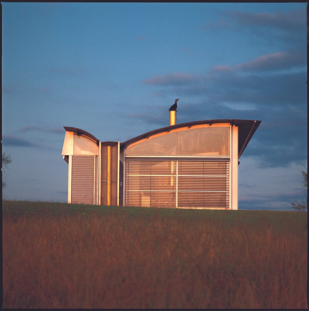 Glenn Murcutt, el hábil arquitecto australiano, lleva décadas proyectando viviendas que combinan la alta tecnología material con una adaptación extrema al lugar, a lo local. Su máxima de «tocar la tierra ligeramente» se aplica de igual modo a su forma de afrontar los límites superiores, de modo que sus cabañas son refugios cuyos tejados no quieren aspirar al cielo sino asumir que hay un cielo, eso es todo.