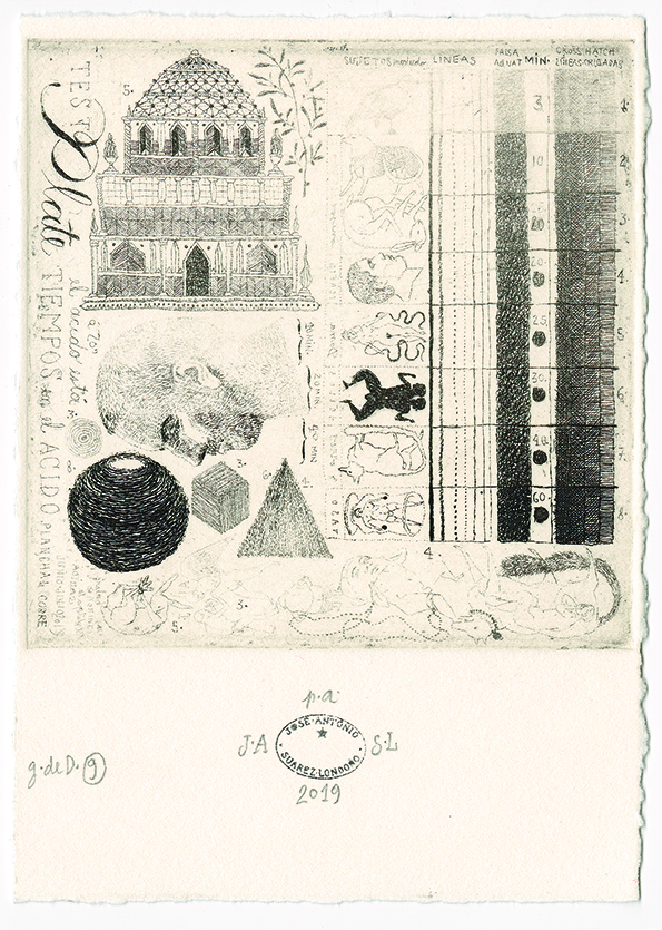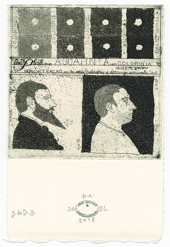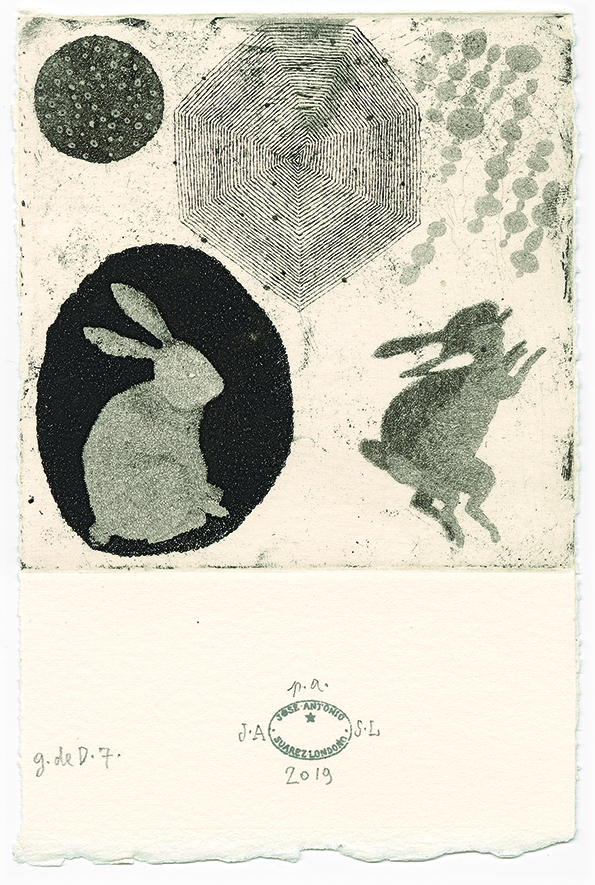 Desde hace unos años, el artista colombiano José Antonio Suárez Londoño se reúne los domingos, «en un ritual tanto personal como colectivo», en su ciudad natal, Medellín, con un grupo de discípulos. Juntos, crean un espacio donde el grabado se transforma en un lugar de aprendizaje, creación y transmisión, como explica Efraín Bernal, al frente de la galería madrileña que lleva su apellido. Bernal Espacio, que ya expuso al artista en 2020, se alía ahora con Gabinete de Dibujos, en el valenciano barrio de Ruzafa, para mostrar esas piezas domingueras de Suárez Londoño.