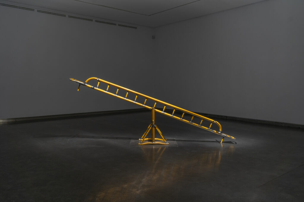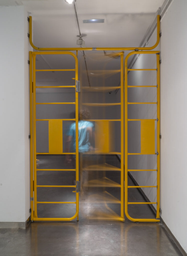 En Prohibido prohibir, Adrián Castañeda (Salamanca, 1990) parte de un objeto cotidiano y universal —la valla peatonal amarilla — para desactivar su función inicial: prohibir, delimitar, impedir el paso. Ese gesto simple y radical, convertir una barrera en un balancín, inaugura una investigación material y simbólica sobre cómo transformar la hostilidad urbana en posibilidad colectiva.