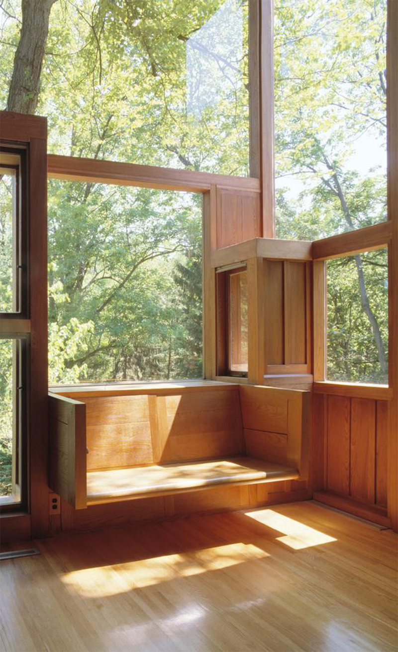 En la esquina de la Casa Fisher, construida en Pensilvania en 1967 por el arquitecto Louis I. Kahn, se concibe precisamente una de esas ventanas. No es un hueco en el muro, sino un espesor marcado, protegido, pensado para acoger al cuerpo. La altura, la profundidad y la sombra invitan a ocuparla, a apoyar la espalda y dejar que la luz llegue sin imponerse. Sentarse aquí no es un gesto menor: implica ralentizar el tiempo, permanecer, aceptar la pausa. La ventana deja de ser un punto de paso para convertirse en una pequeña estancia desde la que mirar, pensar o simplemente estar. Una arquitectura que entiende la contemplación como una forma de ocupar el espacio.