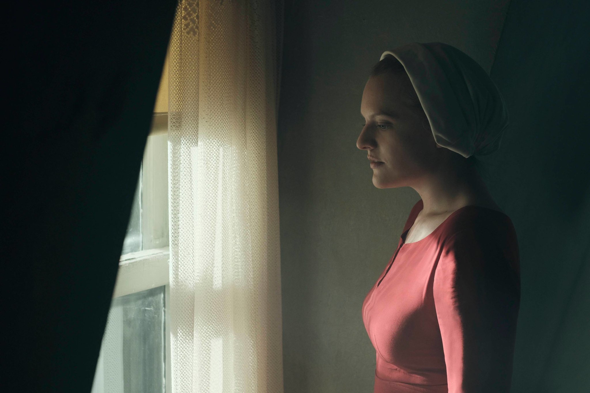 June Osborne junto a la ventana de su dormitorio (El Cuento de la Criada, 2017-2025) © hulu vía The New York Times.