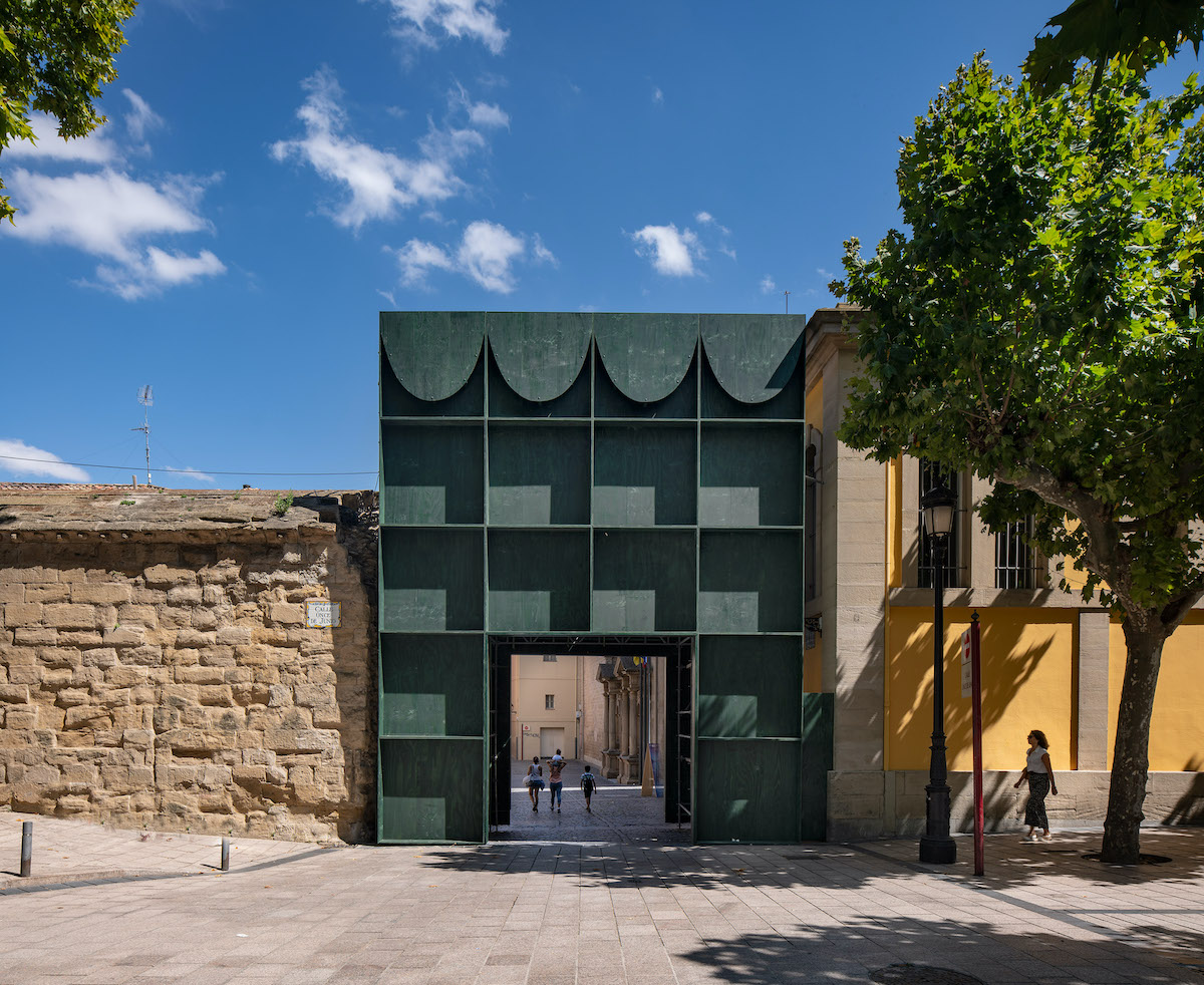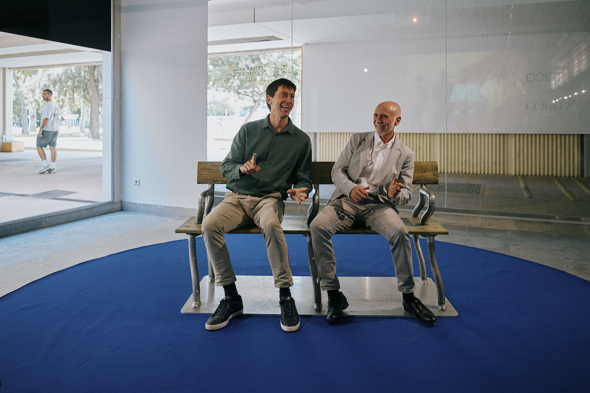 La muestra exhibe fotografías de los proyectos seleccionados y, también, expone una de las piezas diseñadas para la edición de Concéntrico de 2025 y que en junio se mostró en Logroño. Se trata del Banco Móvil (Dancing bench), de Soft Baroque.