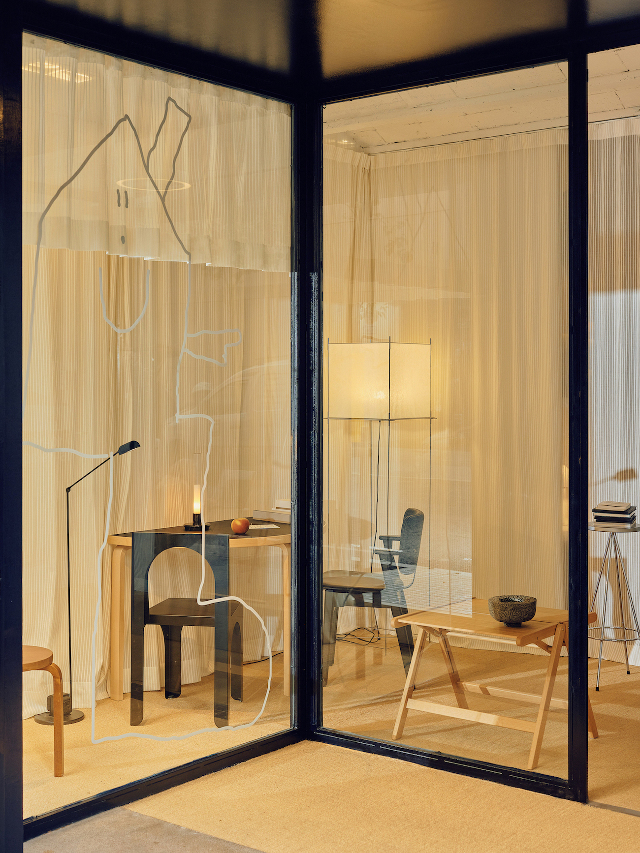 En sus 180 metros cuadrados de exposición, Matèria presenta una selección que abarca iluminación, mobiliario, textiles y objetos de uso cotidiano. Entre las marcas representadas se encuentran nombres locales como Bd Barcelona, Marset, Isist Atelier, Santa & Cole o Trenat junto a firmas nórdicas como Carl Hansen, Fredericia, Hay, J.L. Møller, Louis Poulsen, Montana, &Tradition, o Wästberg, y clásicos internacionales como Alessi, Astep, Artek, Capellini, Lumina, Magis, Nemo Lighting, Objekto, Oluce, Rex Kralj o Thonet.