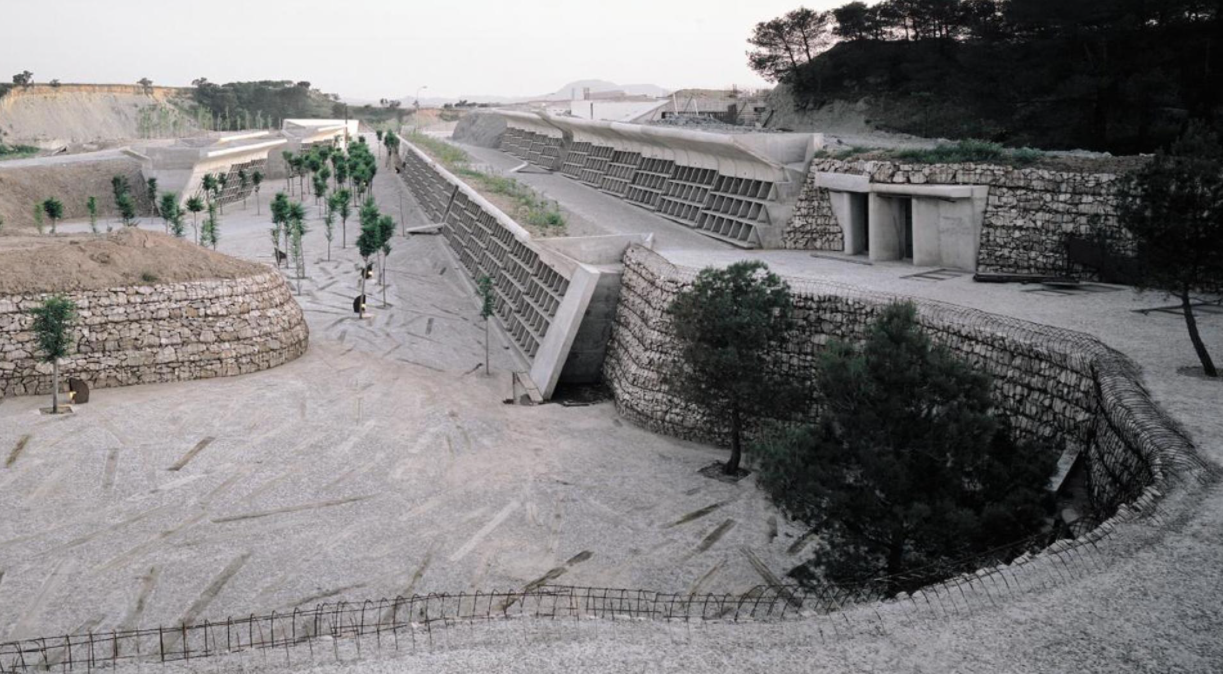 ‘Miralles’ se detiene en sitios tan impresionantes como el Centro Cívico de Hostalets de Balenyà, visitado en romería por decenas de arquitectos a lo largo del año; la vivienda que compartió con Tagliabue y con sus hijos, Casa Mercaders; el pabellón de tiro olímpico o la casa que hizo para un primo suyo, pedagogo, entre otros proyectos.