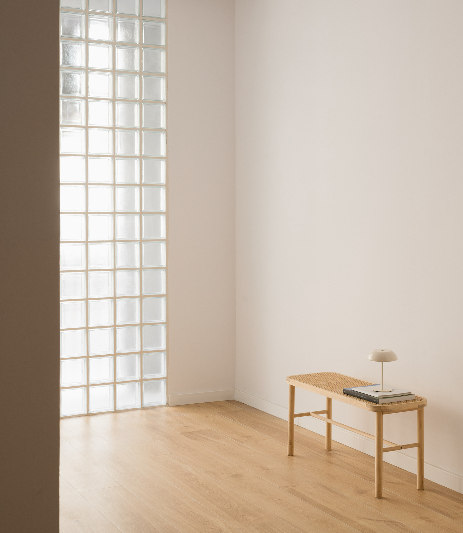 «El proyecto afrontaba, desde el comienzo, varios condicionantes significativos», explican los arquitectos. «La ventilación exclusivamente a través de la fachada, la profundidad del local que dificultaba la llegada de luz natural al interior, y la necesidad de garantizar privacidad frente a la vía pública. A todo ello se sumaba el requerimiento normativo de incorporar una nueva plaza de aparcamiento vinculada a la vivienda, y un presupuesto muy acotado, que exigía una propuesta que optimizara los recursos».